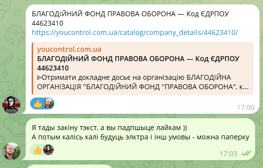 Назва арганізацыі: Благодійний Фонд "Правова Оборона"